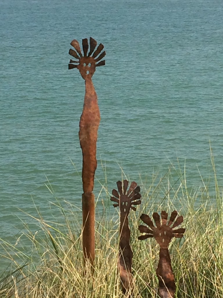 Happisburgh Mimi Installation Sculpture Grouping of outdoor Copper Mimi on beach 2017 Mimi on dunes installations 2017 Installations of Mimi groupings at beach near Happisburgh. 2017 Related