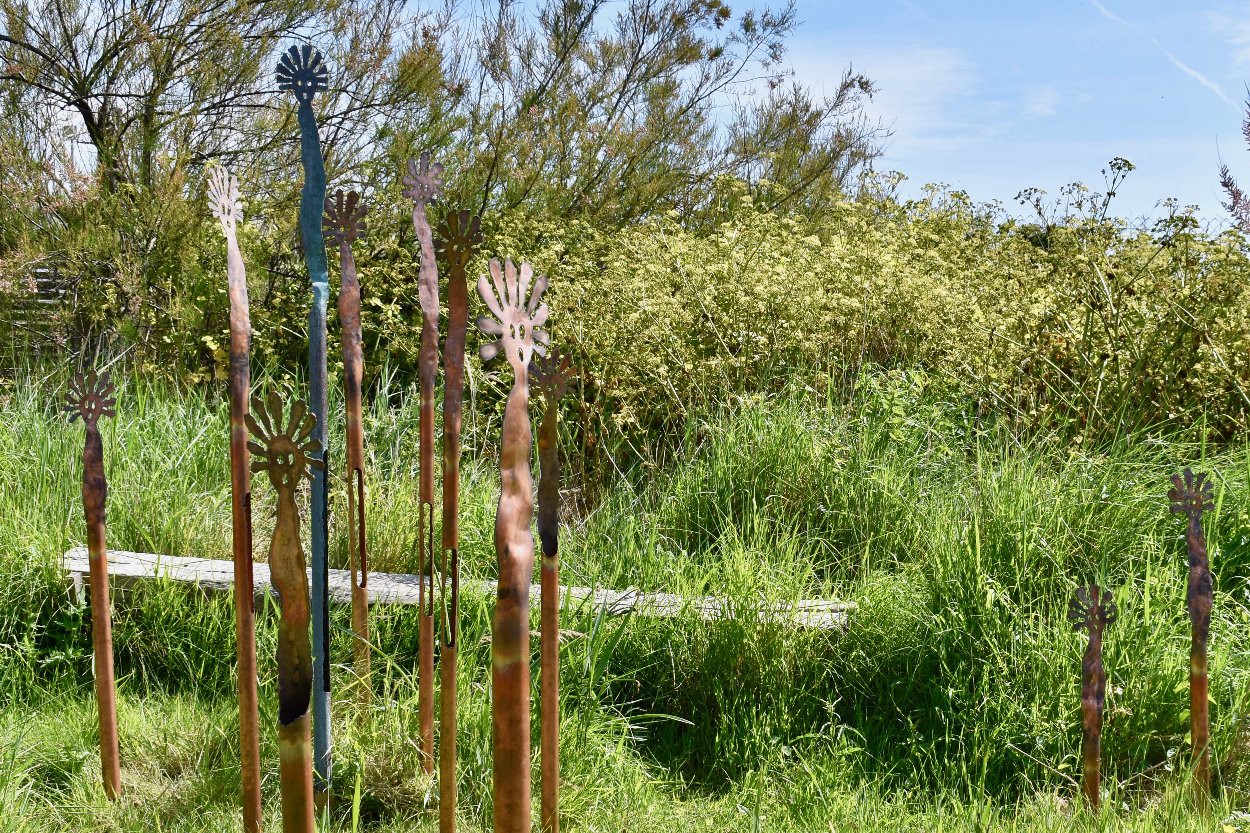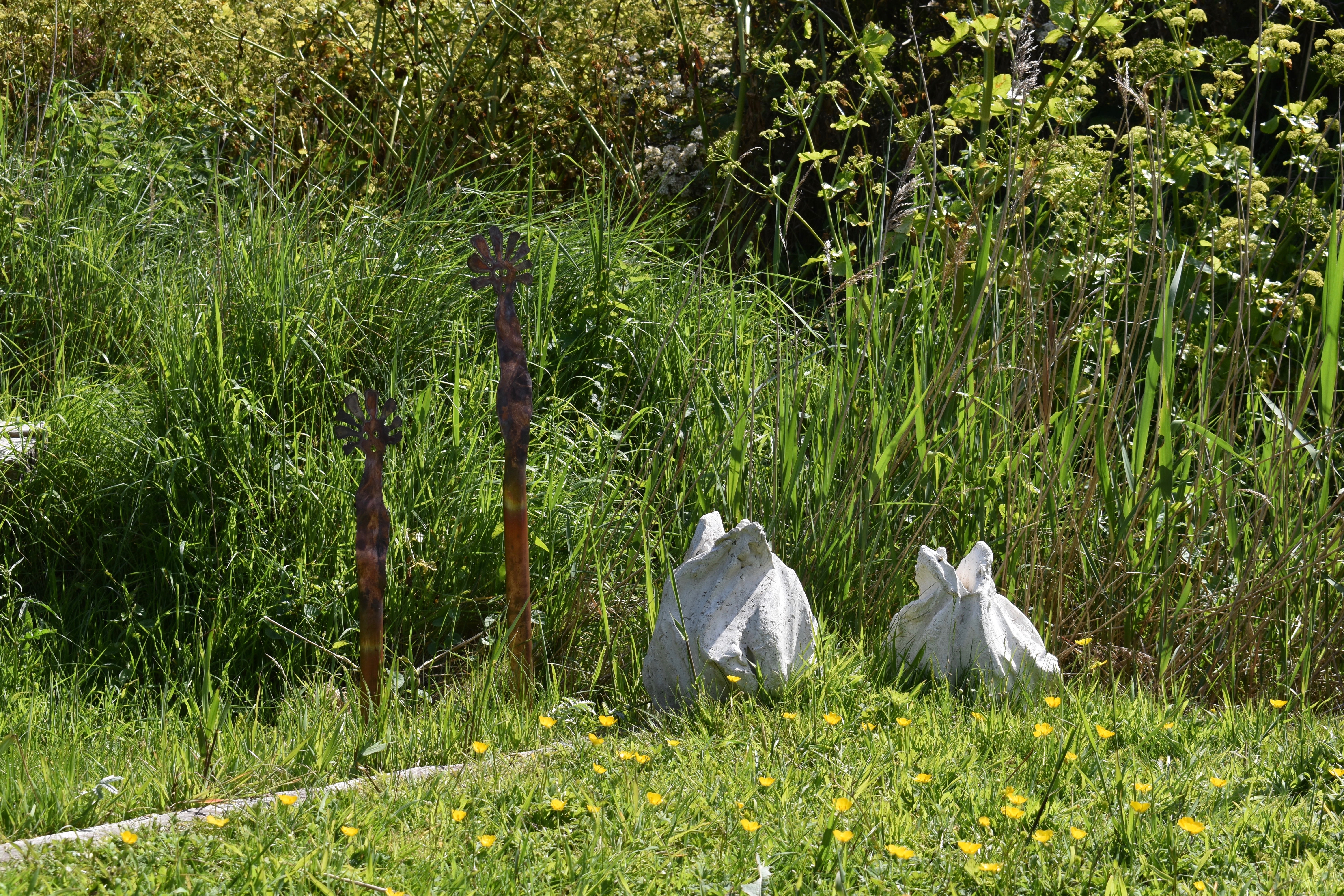 Garden Installation of outdoor copper Mimi figures. Summer 2019